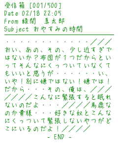 :Marronさん!遅くなりました!ごめんなさいでした!←←← 緑間くんですっ!リクエストお待ちしておりまーす