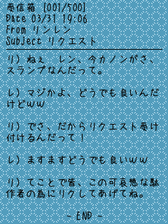 レンですね!!了解しました(*´∇`*)
