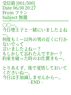 :嫉妬なのかヤンデレなのか← いや、嫉妬か。 キャラ崩壊しすぎて泣けますモ