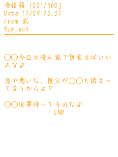 :まおリクの武だよ♪一応武が○○に夕飯誘った話だよ♪駄作でもよろしいならリク&コメお待ちしてます☆