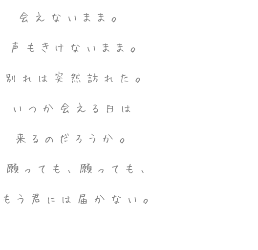 人気テーマ:君 私 恋 あなた 人 貴方 僕 自分 気持ち 俺 片思い w 笑顔 言葉